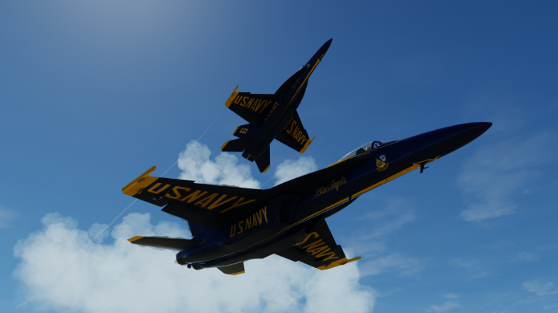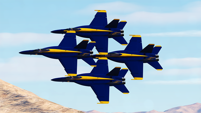 The Virtual Blue Angels are a group of enthusiastic hobbyists who use PC flight simulation software to replicate the precision aerobatics of the United States Navy's flight demonstration squadron, the Blue Angels. We aim to emulate the dedication and professionalism of the real Blue Angels through our videos, screenshots, and live shows. We fly commercially available flight simulators over the internet to precisely recreate the flight demonstration of the Blue Angels in real time, with members participating from all across the United States from coast to coast.